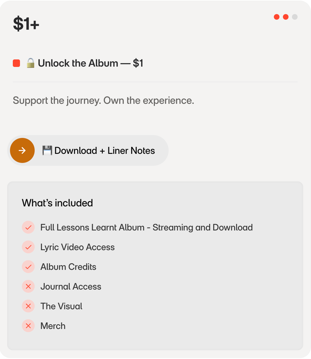 🎶 Support independent music and unlock *Lessons Learnt* for just $1.