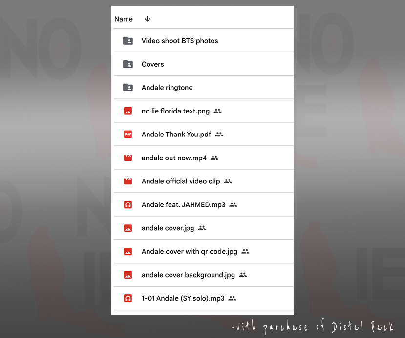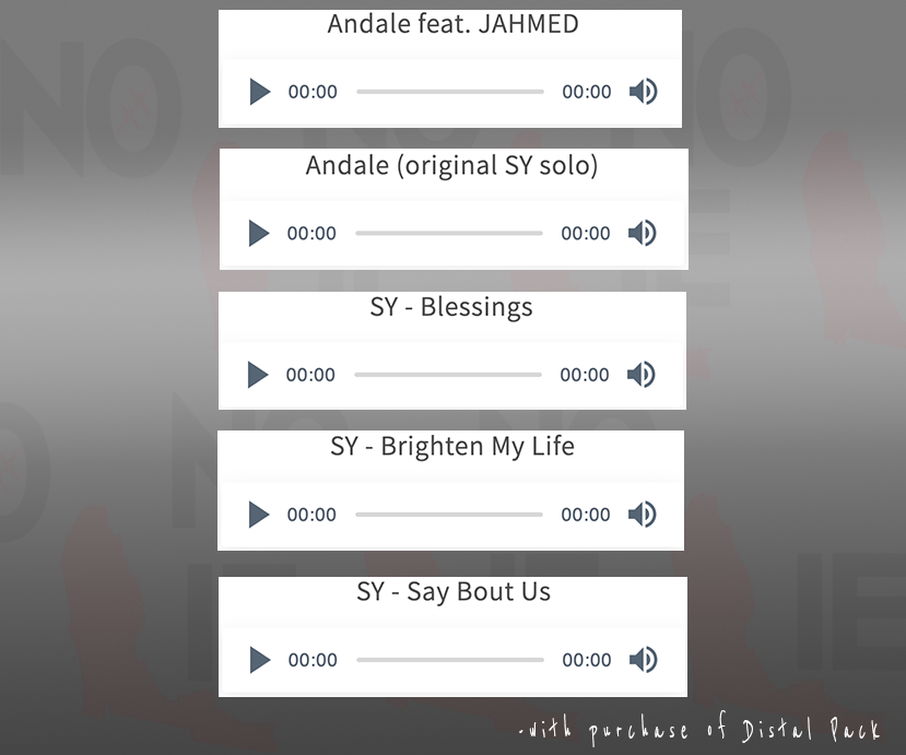 SY "No Lie" digital download pack with 5 song downloads including 4 unreleased tracks, a discount code and "Andale" Thank You Pack.